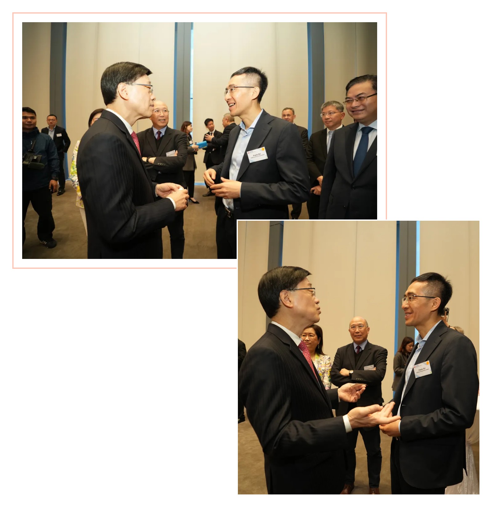 ▲行政長(cháng)官李家超先生與天科雅董事長(cháng)蘇震波先生交流
