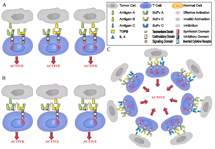 盡管多項研究數據顯示,多靶向CAR-T治療多種惡性腫瘤的療效顯示積極,成為預防抗原逃避的有效手段,但這種類(lèi)型的CAR-T細胞可被多個(gè)靶抗原識別并高強度激活T細胞,容易引起細胞因子風(fēng)暴,并對低表達靶抗原的正常細胞過(guò)度殺傷。